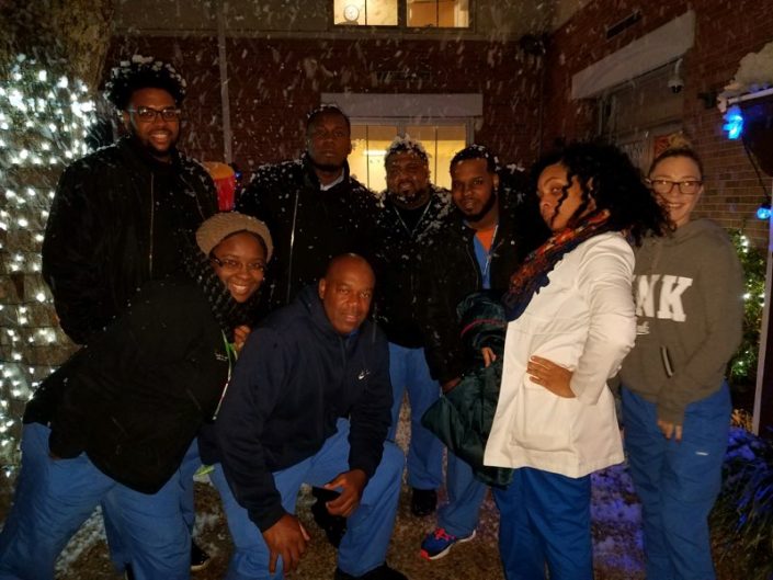 And it’s not just children who get excited to celebrate! “Creating a holiday light show not only impacts the patients we care for, but also impacts the staff caring for this special population,” says Melissa Anne D’Agostino BSN, RN, Child and Adolescent nurse manager at South Oaks Hospital, “It brought tears to our eyes when an adult patient told us she was so happy to see the light show as she was recently admitted and away from her child for the holiday. Another little boy was using the fake snow to make snow angels and walked around with the snow on his face, telling staff he was Santa. It was an amazing event for all!”