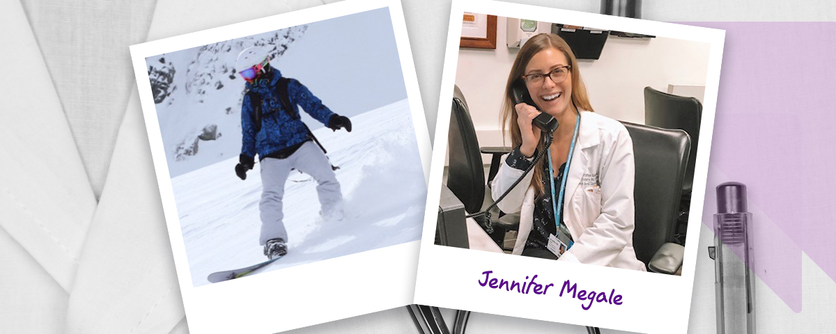 Jennifer Megale, dog lover, athlete, and world traveler, loves an adventure. When she’s not addressing critical care needs as PA Supervisor at NSUH, she spends her time with her Rhodesian Ridgeback Penny, scuba diving and snowboarding all over the world.
