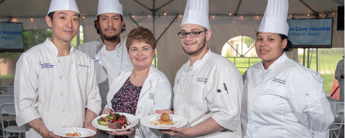 Recently, five Northwell Health hospitals competed in the 2019 Chefs Challenge! Teams had 90 minutes to prepare a healthy and delicious meal with a salmon appetizer, filet mignon entree, and an apple dessert – meals that could potentially be served to patients in our hospitals. After presenting to our judges for tasting, North Shore University won first place in the competition. Rounding out the winners were LIJ Valley Stream Hospital in second and Southside Hospital in third.
