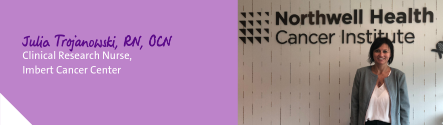 Julia started her Northwell nursing career at Monter Cancer Center where she worked as an oncology research nurse on the solid tumor team. In 2017, she transitioned into a new role as a phase 1 research nurse where she cares for patients that are being treated for the first time in their trials.