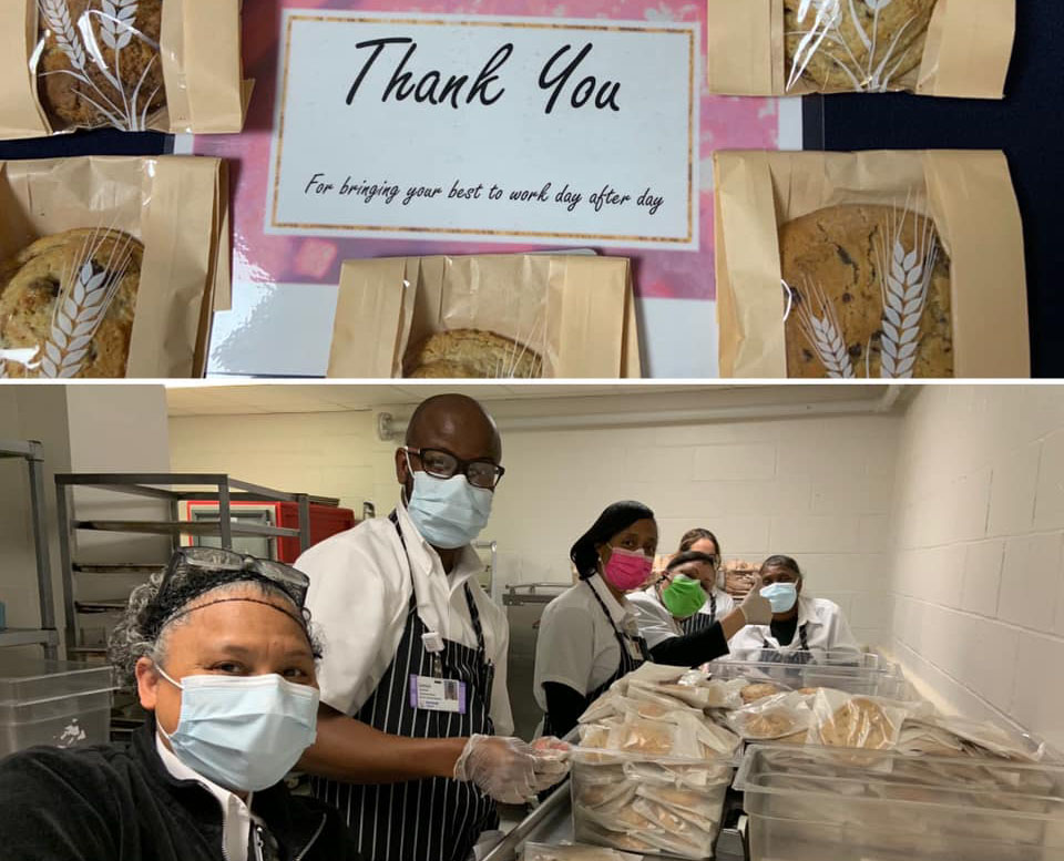However, the work of the team doesn’t end there.  Diet clerks are the voice of the department, handling  hundreds of calls a day, and speaking directly to patients to obtain their orders. Our food service workers are the face of our department, delivering meals to patients in under 25 minutes with a smile and a kind word.