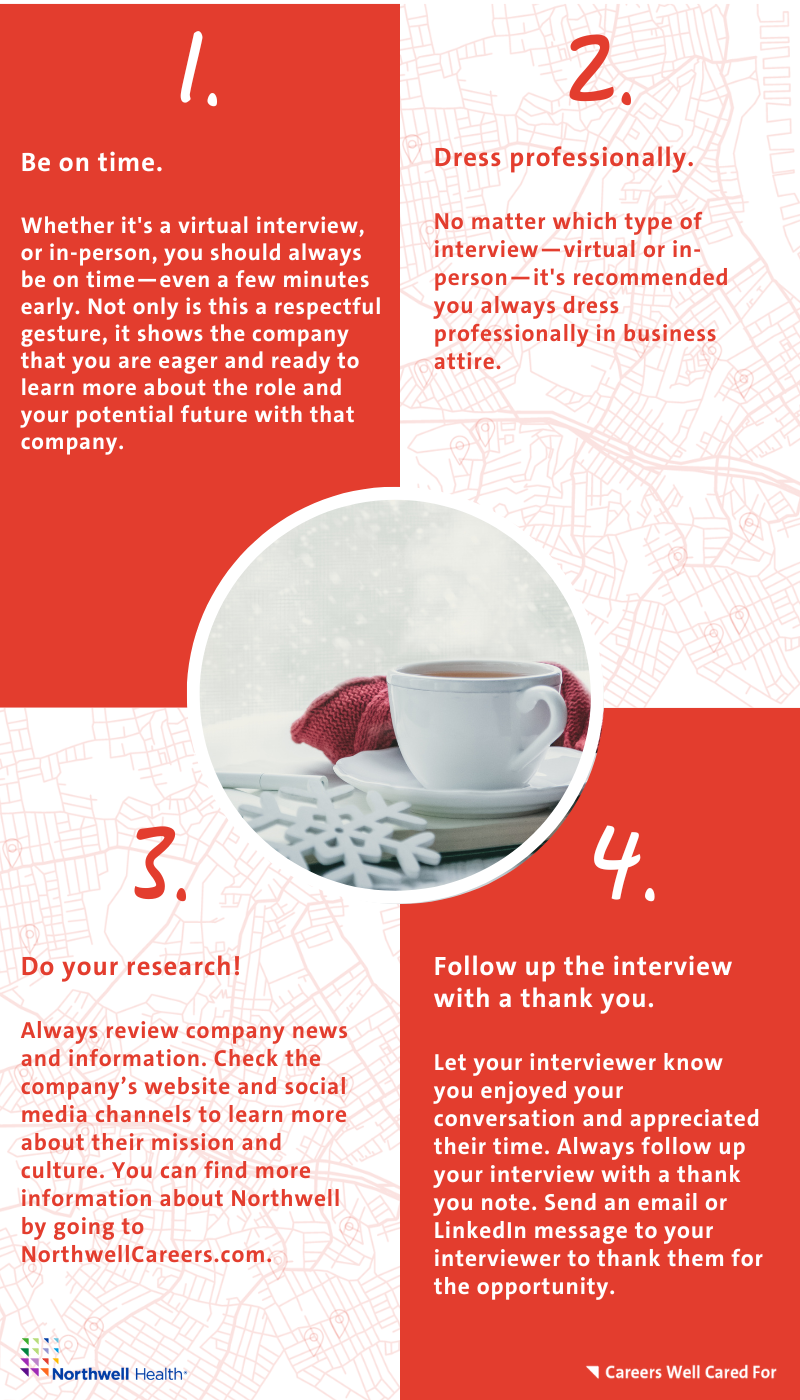 Are you prepared to gift yourself a new career at Northwell Health? Below are 4 important tips to help you succeed in your next interview. Use these tips and have a reason to celebrate a new beginning. Find available opportunities to become a Health Raiser at NorthwellCareers.com
