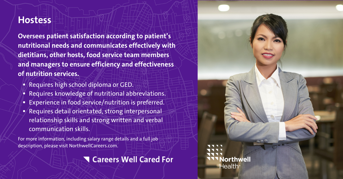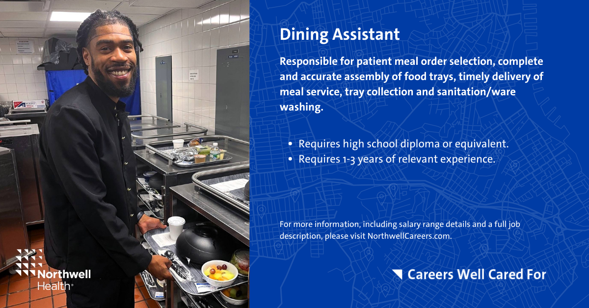 Below, you will find some exciting hospitality and food service career opportunities Northwell offers that only require a high school or equivalent diploma. Take the first step toward a rewarding career at Northwell Health. Check out our available hospitality positions across Long Island, Queens, Manhattan, Brooklyn, Staten Island and Westchester.