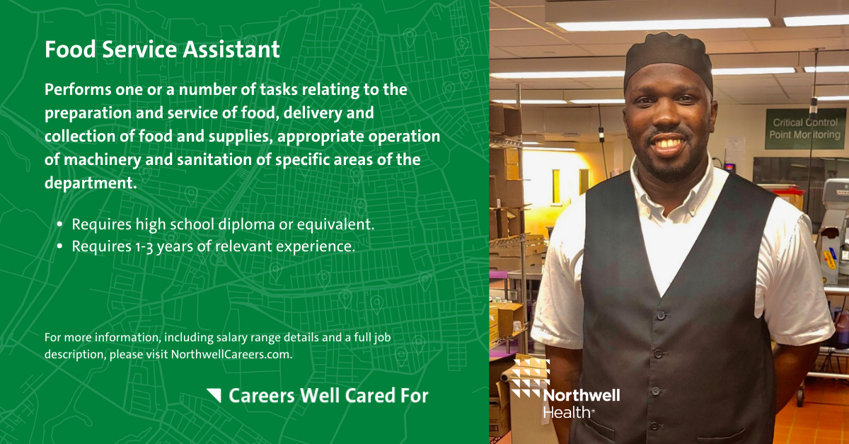 Do you have an interest or experience in the hospitality or food service industry and would like to work for a company that promotes career growth and development? At Northwell, we offer a variety of entry-level opportunities to help you get started on your career journey.