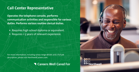Are you looking for a career that will allow you to interact with people while working for a company that promotes career growth and development? From security to call center representative, Northwell Health offers a variety of entry-level opportunities to help you get started on your career journey.