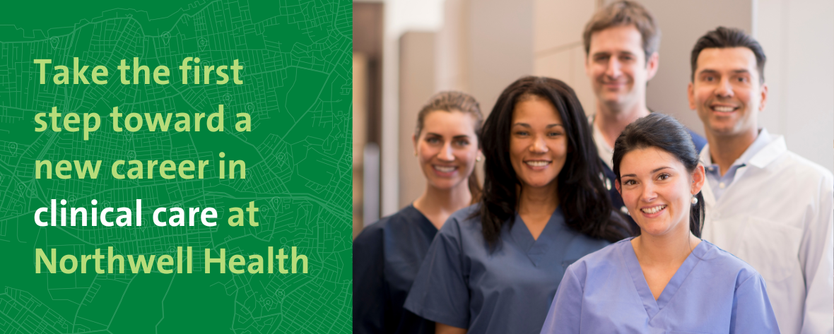 Want to learn more about how you can jumpstart a career in clinical care? Northwell has a variety of clinical care opportunities available across our health system to help you get your foot in the door.