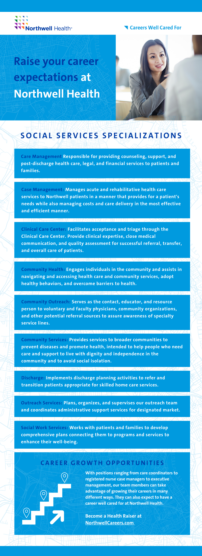 Become a Health Raiser and explore careers that help provide care for our communities, such in care management, case management, and social work.