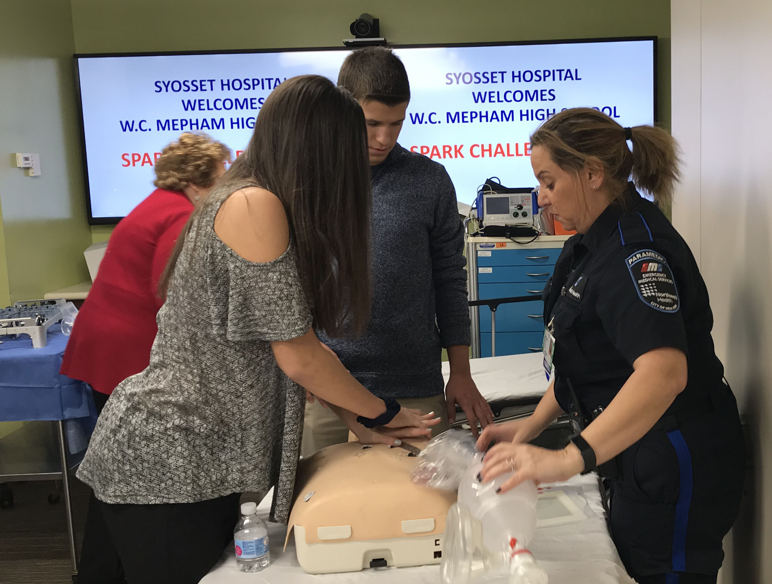 Debra Clifford, BSN, RN, MHA, director of Patient Care Services has participated in the Spark! Challenge at Syosset Hospital for the past three years, “The Spark! Challenge provides students an opportunity through hands-on simulation to learn about careers in healthcare and has opened pathways for students to volunteer with healthcare professionals, and pursue fields that they may not have previously considered.”